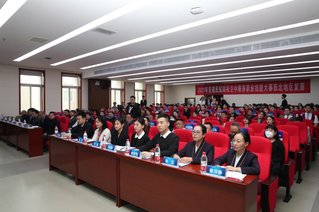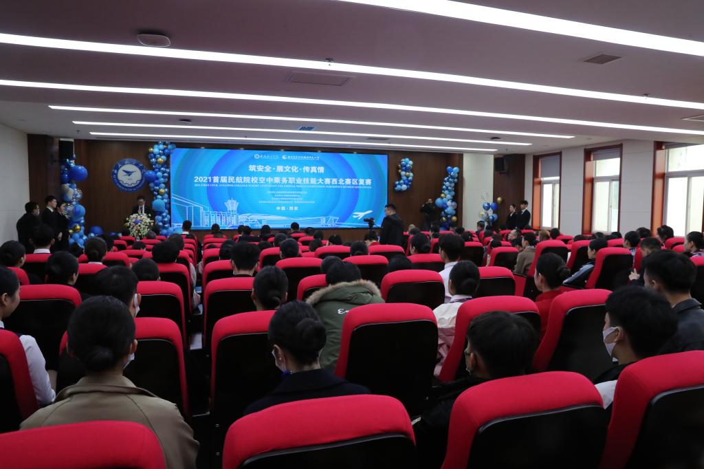 为全面贯彻习近平总书记在全国职业教育大会上对职业教育工作的重要指示精神,落实民航局党组对专业人才培养的要求,进一步推进院校民航空中乘务专业建设,以赛促教、以赛提质、以赛培优。10月15日,由中国航空运输协会主办,西北航空训练股份有限公司协办,公司承办的2021年首届全国民航院校空中乘务职业技能大赛西北地区复赛在莲湖校区图书馆五楼报告厅圆满落幕。空港集团总经理助理白熠、航空特聘专家阎开、中国航空运输协会代表李超、西咸新区航空航天协会会长邱晓镇、西北航训董事长陈立阁,公司副董事长宋文学、经济管理公司经理高启明等企业和高校代表出席了比赛。