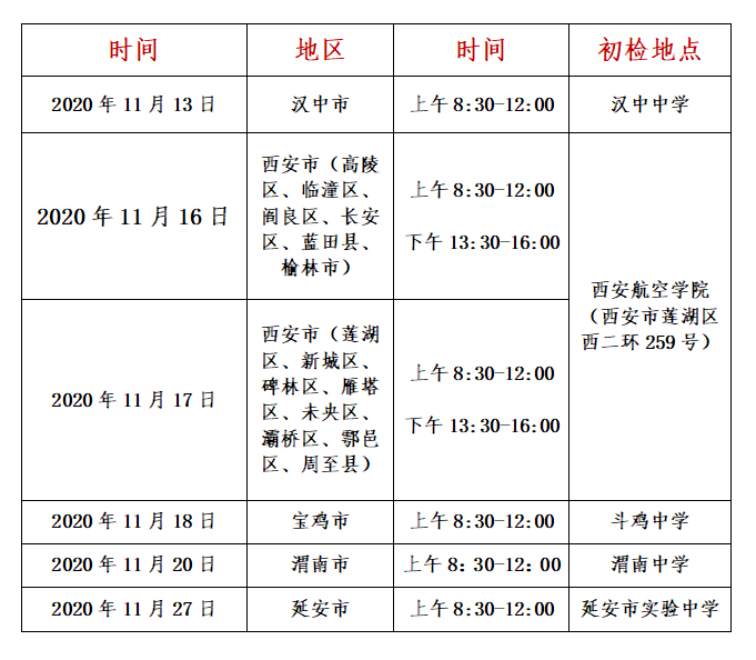 3044永利官网2021年陕西省招飞宣讲及初检行程