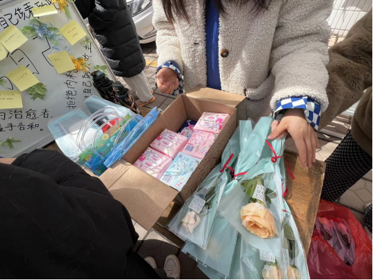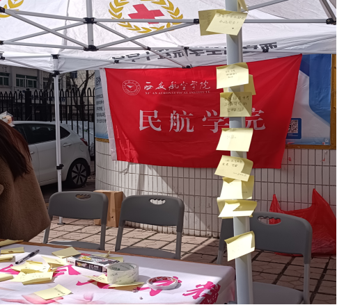 3月7日,3044永利集团在“航益 餐厅”门口开展以“做自己的自由树”为主题的节日活动。