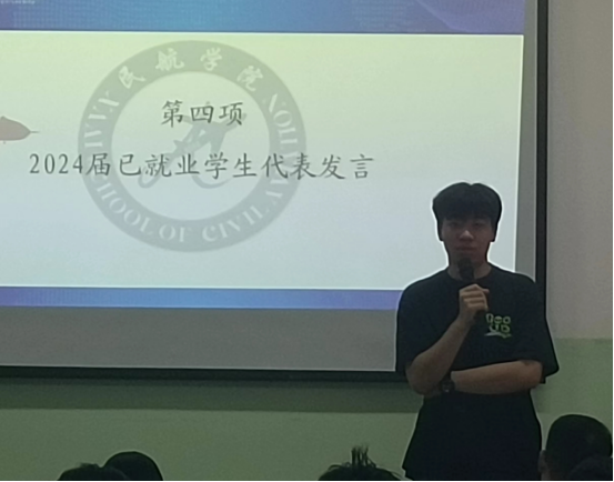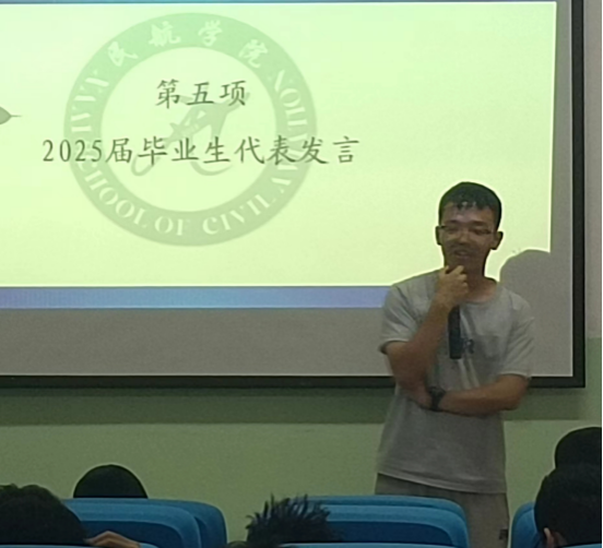 2025届毕业生交通运输211班毛思毓从提升综合素质和专业技能,积极准备就业作表态发言。