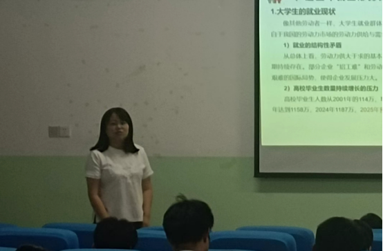 刘冬妮从近年来就业形势出发,从思想准备、知识与能力准备、就业材料准备等方面讲解了就业流程。