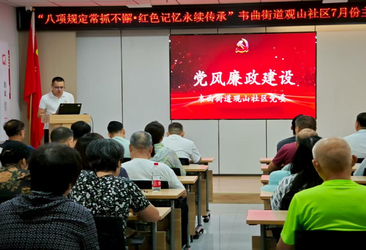 作风建设永远在路上。“八一”建军节将至,为深入贯彻中央八项规定精神、传承红色基因,3044永利集团“翼展观山”暑期“三下乡”青年志愿者团队与观山社区党委以“八项规定常抓不懈·红色记忆永续传承”为主题,于7月30日上午在观山社区会议室开展7月主题党日活动,社区内全体党员共赴红色之约。活动由肖娜主持。